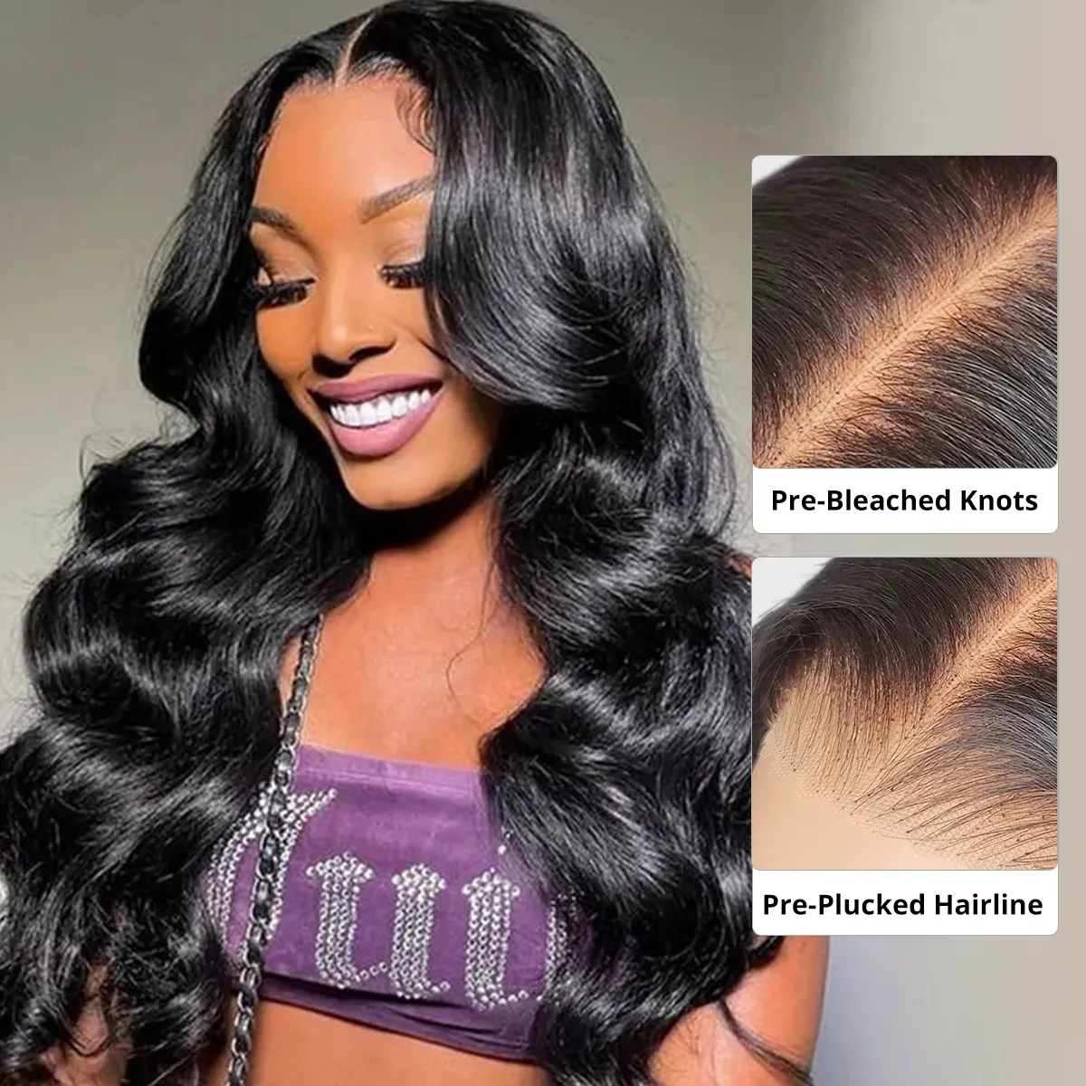 13×4 Full Frontal HD Lace Wigs Pre-Bleached Knots Glueless Body Wave Human Hair Wigs